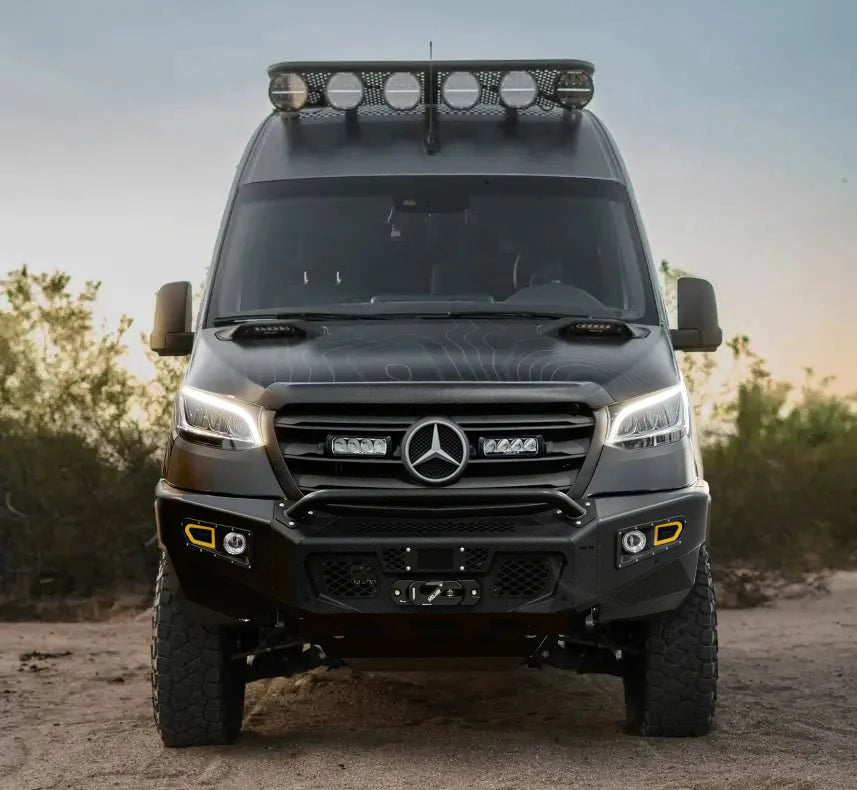 Lighting Equipped with upgraded high-output fog lights and an integrated DRL/turn signal setup, this sprinter bumper ensures you’re seen and ready to tackle low-visibility conditions.