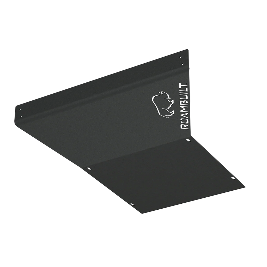Perfect for trail-ready Sprinters, overland builds, and rugged adventure vans, this skid plate is made from 1/4” thick 5052 series laser-cut aluminum to deflect rocks, debris, and harsh terrain without adding unnecessary weight. The powder-coated finish is available in black or gold, offering both protection and a bold, finished look under your van.